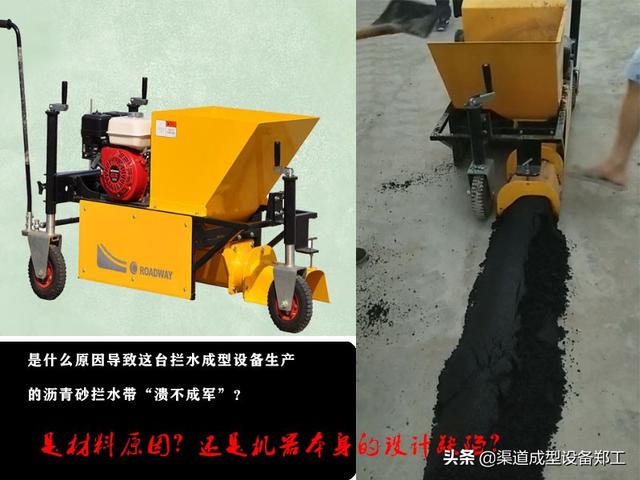 攔水帶成型機(jī)的出現(xiàn)讓高速瀝青砂攔水帶工程變得簡單,但是很多問題也出現(xiàn)了。這也是最近很多客戶一直給我反應(yīng)的問題。這些客戶包括使用我們工廠設(shè)備的客戶,也包括使用其他品牌的客戶。我本著我為人人,人人為我的的和諧精神,把這些案例以及為什么會出現(xiàn)這樣的問題分析處理方法放出來,希望能幫助到遇到這些問題的施工隊。